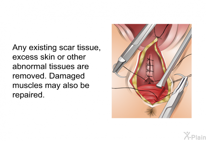 The surgeon makes an incision at the vaginal opening. Sometimes the incision is made in the back wall of the vagina in either a V- or U-shape.