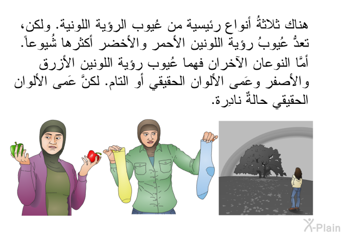 يجعل عيبُ الرؤية اللونية المريضَ يرى الألوان بشكل يختلف عن رؤية بقية الناس لها. وتُدعى عُيوبُ الرؤية اللونية أحياناً باسم "عَمى الألوان".