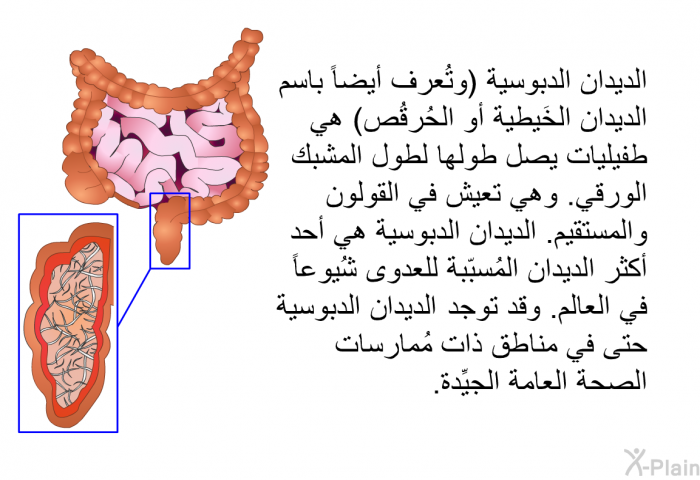 قد تتسبّب الديدان الطفيليّة بالعَديد من الأمراض الطفيلية المختلفة، ومن الأمثلة عليها:   الديدان الدبوسية.  الدودة الشصّيَّة. داء الأسطوانيّات.