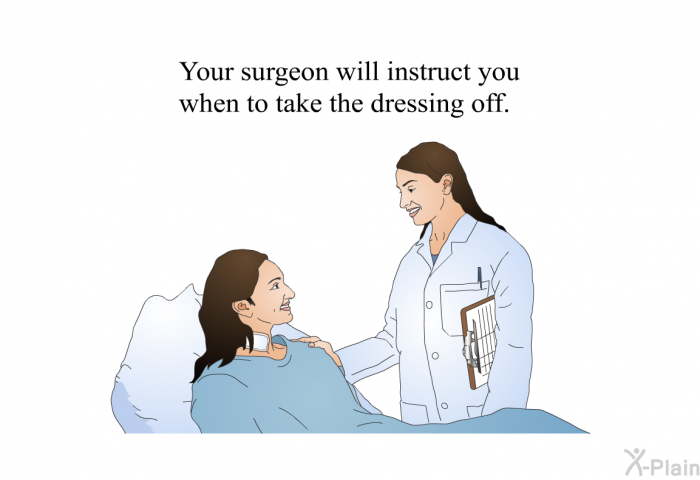 At the time of discharge from the hospital, you may still have a dressing on your incision.