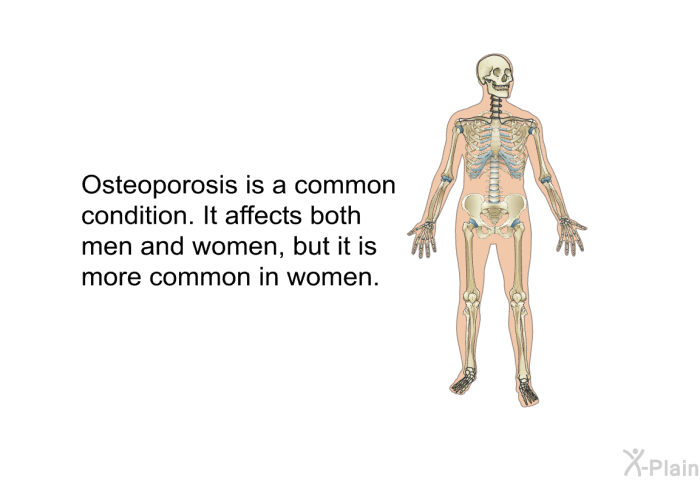 Osteoporosis is a common condition. It affects both men and women, but it is more common in women.