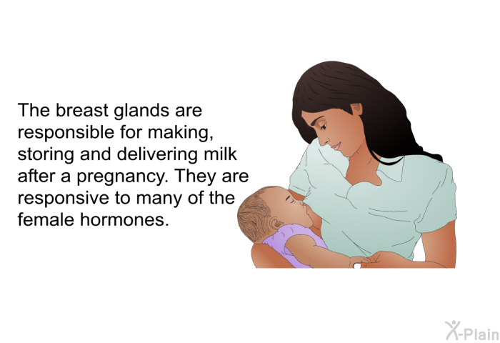 The breasts contain fatty tissue and glands.