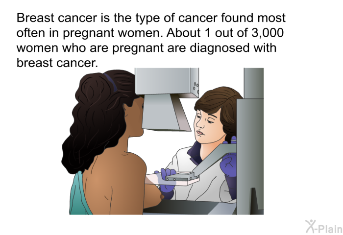 The most common cancers in pregnancy are:  Breast cancer. Cervical cancer. Lymphoma. Melanoma.