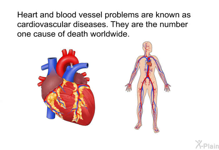 Heart and blood vessel problems are known as cardiovascular diseases. They are the number one cause of death worldwide.