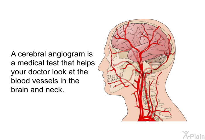 A cerebral angiogram is a medical test that helps your doctor look at the blood vessels in the brain and neck.