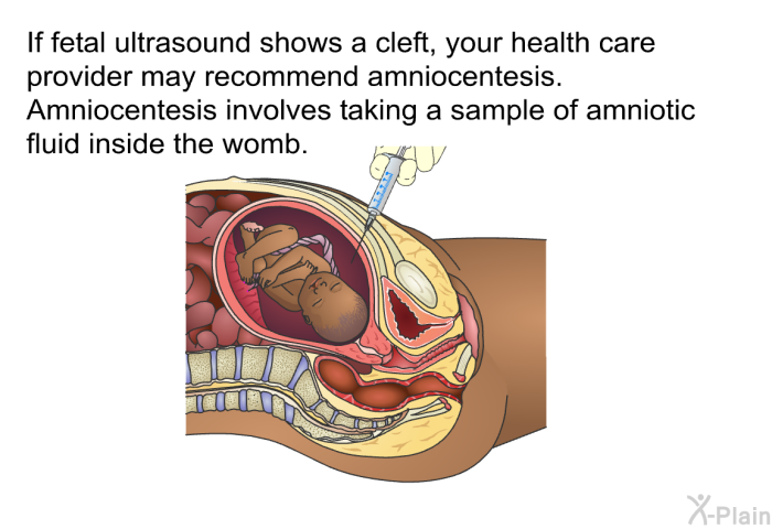 Before birth, ultrasound can sometimes diagnose cleft lip during pregnancy. Ultrasound uses sound waves to create pictures of the fetus inside the womb. Diagnosis becomes easier as the fetus grows. It may be hard to see cleft palate without cleft lip before birth, since the inside of the mouth is not visible.