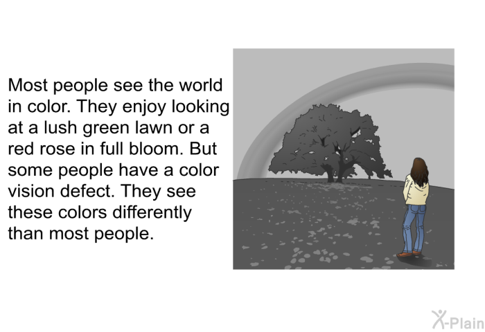 Most people see the world in color. They enjoy looking at a lush green lawn or a red rose in full bloom. But some people have a color vision defect. They see these colors differently than most people.