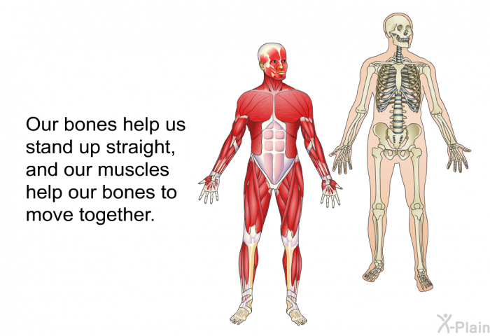 Our bones help us stand up straight, and our muscles help our bones to move together.