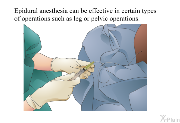 Epidural anesthesia can be effective in certain types of operations such as leg or pelvic operations.