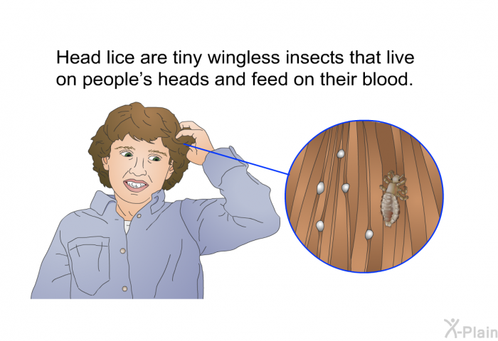 Head lice are tiny wingless insects that live on people's heads and feed on their blood.