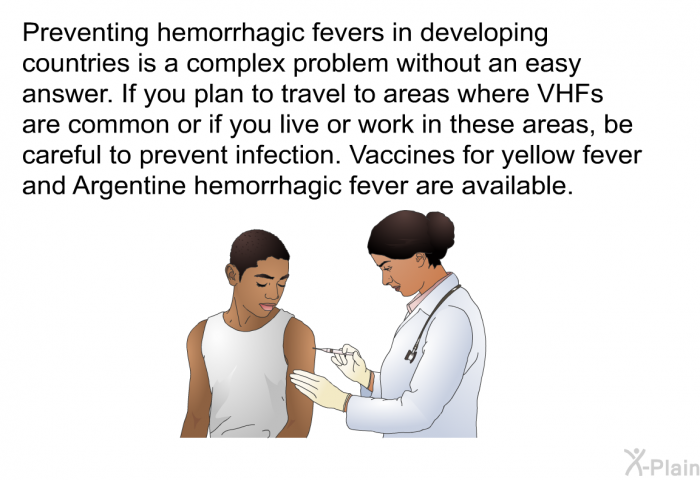 There is no known cure or treatment for most viral hemorrhagic fevers. But in some cases, the medication ribavirin may help prevent complications or shorten the amount of time a person is ill. Supportive care is vital for a person recovering from a hemorrhagic fever.