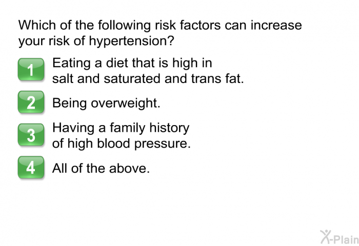 People who have a family history of hypertension are more likely to develop the condition. African-Americans are also more likely to have hypertension.