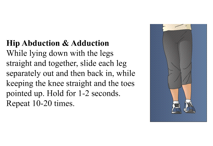 <B>Knee & Hip Flexion</B> While lying down flat, slide one heel at a time towards your body to a bent-knee position. Hold for 10-15 seconds. Repeat 10-20 times.
