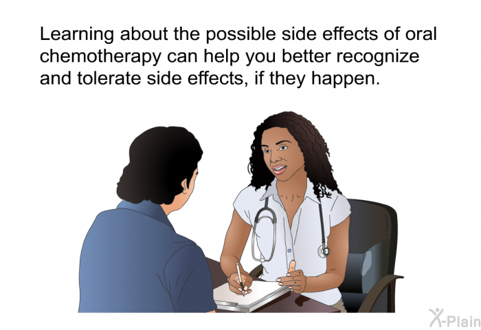 Learning about the possible side effects of oral chemotherapy can help you better recognize and tolerate side effects, if they happen.