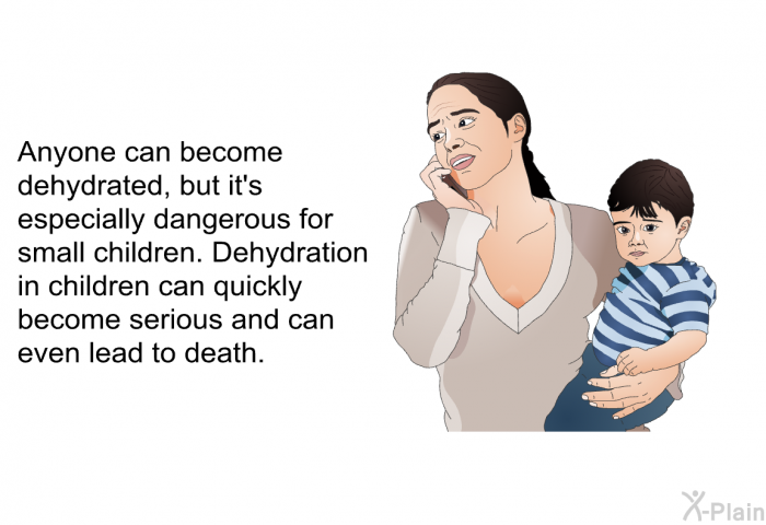 Anyone can become dehydrated, but it's especially dangerous for small children. Dehydration in children can quickly become serious and can even lead to death.