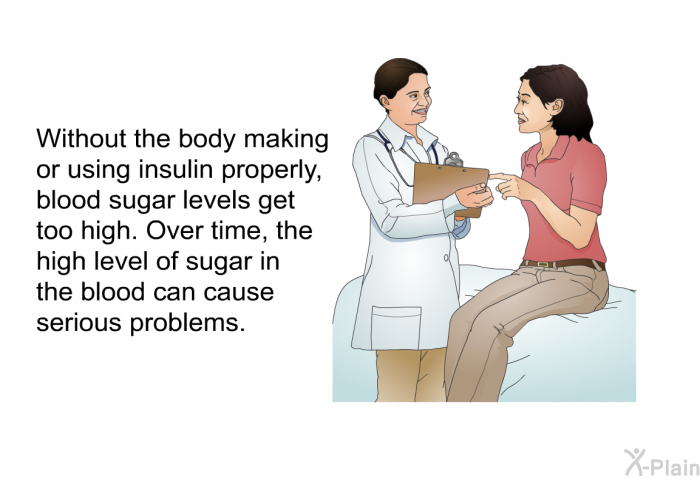 Diabetes is a disease that affects millions of people every year. It can happen if the pancreas makes little or no insulin. This is called type 1 diabetes. It can also happen when the body does not make enough insulin or isn't able to use it. This is called type 2 diabetes.