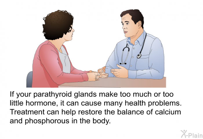If your parathyroid glands make too much or too little hormone, it can cause many health problems. Treatment can help restore the balance of calcium and phosphorous in the body.