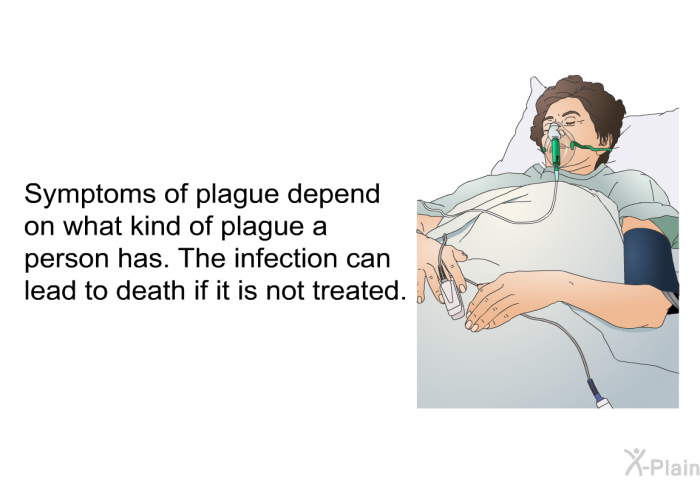 Symptoms of plague depend on what kind of plague a person has. The infection can lead to death if it is not treated.
