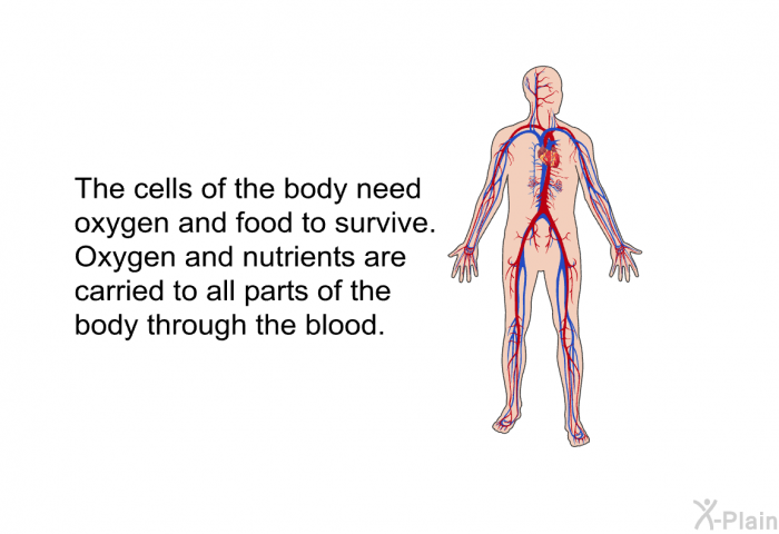 The cells of the body need oxygen and food to survive. Oxygen and nutrients are carried to all parts of the body through the blood.