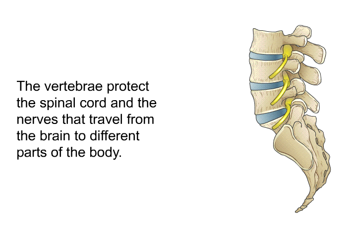 The spine is formed by a series of solid bones called vertebrae. The vertebrae are separated by softer disks. There are 33 vertebrae in the spine.