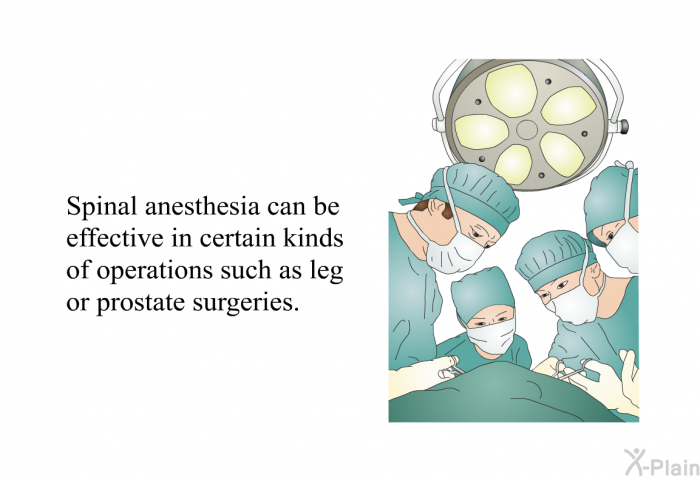 Spinal anesthesia can be effective in certain kinds of operations such as leg or prostate surgeries.