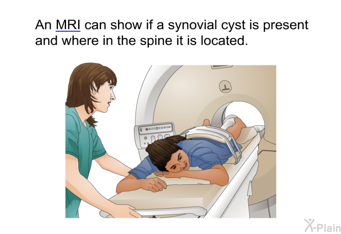 If your healthcare provider suspects you may have a spinal synovial cyst, imaging tests may be done such as MRI and X-rays.