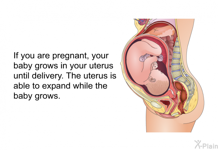 If you are pregnant, your baby grows in your uterus until delivery. The uterus is able to expand while the baby grows.