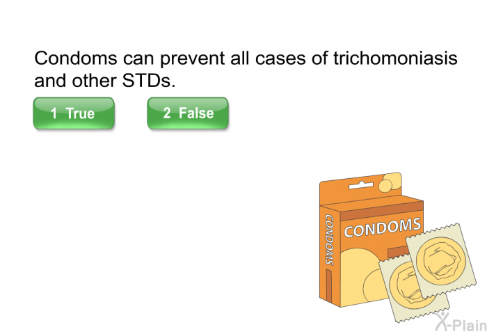 You can also reduce your chances of getting trichomoniasis by using a latex male condom. This only works if the latex male condoms are used correctly every time during vaginal sexual activity.