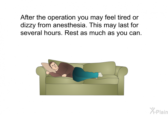 After the operation you may feel tired or dizzy from anesthesia. This may last for several hours. Rest as much as you can.