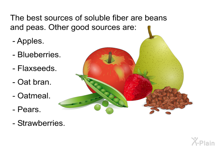 Fiber can be found in all plant foods. This includes:  Beans. Fruits. Nuts. Vegetables. Whole grains.