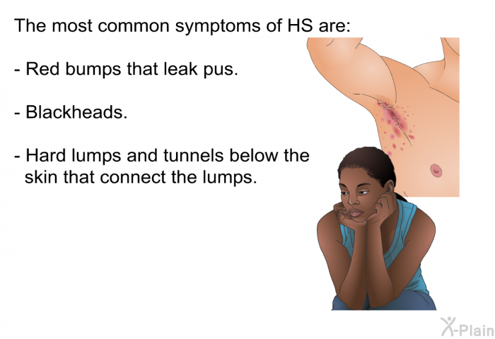 Hidradenitis suppurativa is a long-lasting skin condition. It is also called HS. It can affect a single area of the body or multiple areas. Symptoms are most likely to develop around hair follicles found in the armpits, groin and anal area. This disease can cause pain and inflammation.