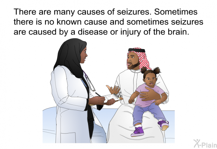There are many causes of seizures. Sometimes there is no known cause and sometimes seizures are caused by a disease or injury of the brain.
