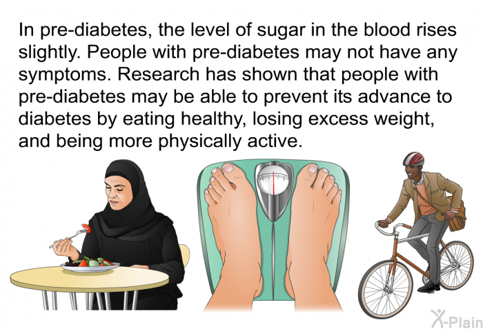 The symptoms of type 2 diabetes show up gradually, over a long period of time. Most people who develop diabetes pass through a phase where they are at increased risk for diabetes. At this stage they do not have diabetes but are at an increased risk of developing it. This stage is also known as pre-diabetes.