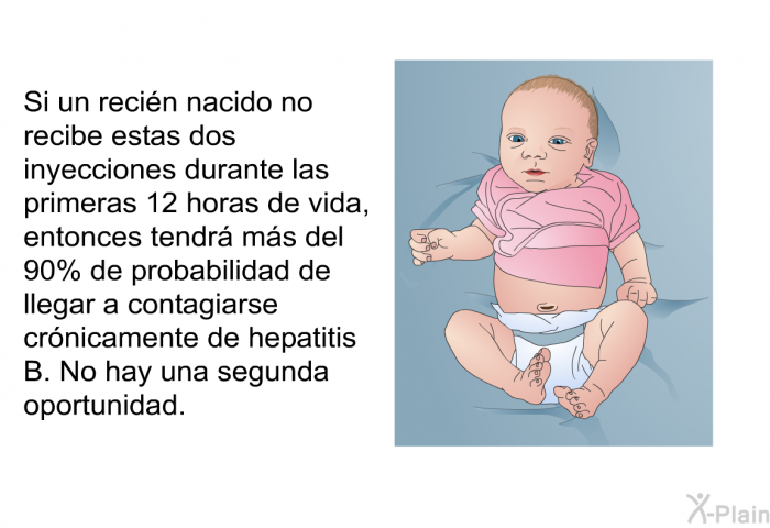 Si un recién nacido recibe estas dos inyecciones durante las primeras 12 horas de vida, tendrá el 95% de probabilidad de estar protegido contra una infección de hepatitis B de por vida.