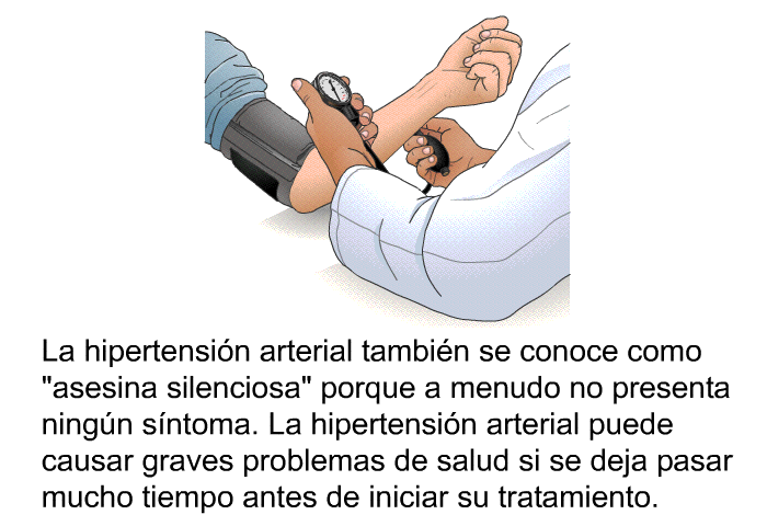 La hipertensión arterial también se conoce como “asesina silenciosa” porque a menudo no presenta ningún síntoma. La hipertensión arterial puede causar graves problemas de salud si se deja pasar mucho tiempo antes de iniciar su tratamiento.