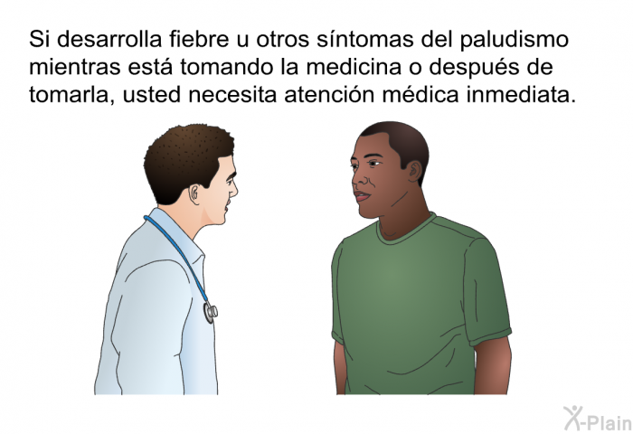 Las personas que viajan a áreas donde hay paludismo deben protegerse con medicamentos antipalúdicos. Puede que tenga que tomar los medicamentos por unas semanas durante el viaje y después de abandonar el área.