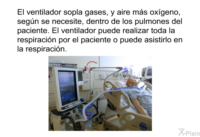 Primero, se conecta el ventilador al paciente por medio de un tubo que se ubica en la boca o en la nariz y desciende hasta la tráquea. Este tubo se denomina tubo endotraqueal o ET. La intubación consiste en colocar el tubo ET dentro de la tráquea del paciente.